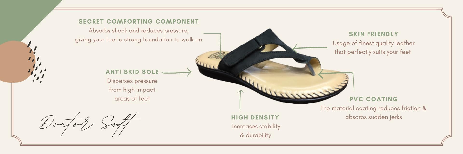 Our orthopaedic specialized products come highly recommended by doctors for their strategic design aimed at enhancing comfort, promoting the right posture, and ensuring a pain-free experience. Crafted with an extra soft footbed, they provide unparalleled comfort with every step. The anti-skid sole offers shock absorption, making walking safer and more stable. We prioritize quality materials to guarantee a rash-free walking experience, and our inner sock lining ensures a soft feel throughout wear. Invest in your comfort and well-being with our orthopaedic footwear range – designed for your comfort, endorsed by professionals.